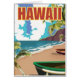 Hawaii vintage reist poster van een oude vissersboot op een zandstrand.
