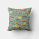 Aqua blue kussens, bedrukt met een patroon van Hawaiiaanse strandnamen op houten borden, gele hibiscus bloemen en exotische palmbladeren. Ideaal voor het strand bruiloft koppel, Hawaiian strandhuis of zomerliefhebbers.