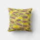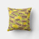 Pastel gele kussen met een patroon van Hawaiiaanse strandnamen op houten borden, gele hibiscus bloemen en exotische palmbladeren. Ideaal voor het strandbruiloft, modern condo of zonnige zomerlounge.