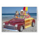 Twee gele Labs en een veefhond in Hawaiian in een Woodie. In het artikel staat Happy Birthday in Hawaiian... maar je kunt dat veranderen .