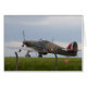 Rare Hawker Hurricane-strijder uit de Britse vechtpartij, een van de weinigen die nog steeds vliegen. Drie kwart uitzicht als deze vroege gevechtstaxi's van 300 km/h die op het oude vliegveld RAF Biggin Hill vertrekken.