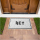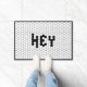 Deze klassieke zwarte en witte spiraalvormige vormgeving van de tegel luidt "HEY". Zo'n leuke toevoeging aan elke voordeur.