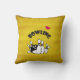 Een leuk kussen. Een zwarte en witte set bowlingspelden en een bowlingbal. De gekromde tekst zegt Bowling met een hart boven de i. Eenvoudig ontwerp voor bowlingventilatoren. Plaats op een donkergele getextureerde achtergrond met zwakke strepen.