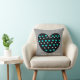 Heart Jubileum Pillow, w Names/Date; Zwart/Aqua; Groot zwart hart met kleinere turquoise en witte harten binnenin, op grijze kussen; pas met de namen van paren aan de voorzijde van de kussen aan, en verjaardagsdatum op de achterkant van de kussen