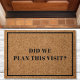 De deurmat "Hebben we dit bezoek gepland?" legt perfect de essentie van een humoristisch, introvert-vriendelijk welkom vast. Het is een speelse manier om gasten te begroeten, hen met een glimlach eraan te herinneren dat ongeplande bezoeken een verrassing zijn! Deze deurmat kan een geweldige gespreksstarter zijn of een vriendelijke herinnering aan de geneugten van geplande interacties. Het is een ideale keuze voor iedereen die een vleugje humor en persoonlijkheid aan hun deur wil toevoegen.
