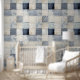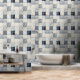 Hedendaagse blauwe indigo collage papier textuur behang