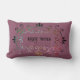 Een gepersonaliseerde donkerroze Hedge Witch lumbaal kussen met elegante regenboogkleur decoratieve rol. De tekst Hedge Witch kan worden aangepast aan een ander soort heks en er is ruimte voor een naam op de achterkant. Een hekserig cadeau of een idee voor een interieur.