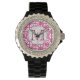 Hot Pink Quarterfoil Lattice Quarter Folie Print Stof Patroon Aangepaste gepersonaliseerde Monogram Initiaal polshorloge