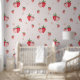 Dit schattige roze boho aardbei baby meisje kwekerij behang van het Heidi Collectie is ideaal voor een baby kwekerij, kinder kamer of speelkamer. Het unieke boho-design heeft schattige picknick aardbeien in rood, roze en wit.