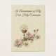 Personaliseer deze prachtige First Holy Communion Lace Remembrance Kaart met roze bloemen, kelk en gastheer.