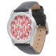 Dit mannen horloge heeft een herhalend ovalenpatroon in rood en baksteen met verspreide witte ovalen.