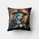 Heks geniet van thee op een griezelige Halloween-a Kussen