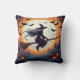 Heks op een bezemsteel in het maanlicht met vleerm kussen