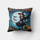 Een mysterieuze heks rijdt op haar bezemsteel onder een volle maan, omringd door vleermuizen en gloeiende pompoenen, en legt de essentie van Halloween-magie vast.