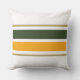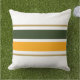 Dit sportieve ontwerp heeft een witte achtergrond met brede goudgele en donkerbosgroene midden horizontale strepen met warme bruine strepen.