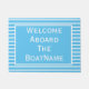 Perfect chic, en kleurrijk helder lichtblauw en wit het Onthaal Aboard De ________ doormat voor uw boot van marineslag aanpasbaar met uw botennaam