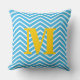 Heldere Aqua en wit met het Bright Gele Moderne Monogram Zig Zag Pattern Sierkussen