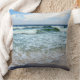 Witte golven met een kap van een diepblauwe oceaan rollen in een zandstrand.
