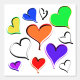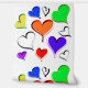 Grote heldere harten in rood, oranje, geel, groen, blauw, paarse, wit met 3D-effect tegen een witte achtergrond. Origineel kunstwerk van TamiraZDesigns.