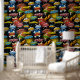 Super Hero Wallpaper | Jongens Slaapkamer Decor. Voeg een dynamische touch toe aan uw ruimte met deze heldere kleurrijke retro komische pop art wallpaper. Met klassieke superheld geluidseffecten in een gewaagde, midden-eeuwse moderne stijl, is dit ontwerp perfect voor jongens slaapkamer decor of iedereen die houdt van de levendige stripesthetiek. De typografie in stripboekstijl en iconische woorden als "Bam", "Bang" en "Pow" geven elke kamer een energiek gevoel.
