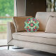 Het is een mooi kussen met het levenswiel er op. Je ziet dat het een afbeelding is van een tempeldeur of wand, het hout is herkenbaar. Het past geweldig in ons interieur: een beetje Zen, maar wel kleurig. Mooie kleuren, zoals op de afbeelding.