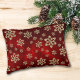 gouden dunne sneeuwvlokken afbeeldingen van verschillende grootte zijn tegen een rijke donkerbruine rode abstracte achtergrond op deze elegante kussen. Festief en elegant voor je decor, vooral tijdens de vakantieperiode. Beide zijden van de kussen hebben hetzelfde afbeelding *Let op: het afbeelding is afgedrukt en bevat geen effectief glitter.*