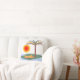 Kleurrijk vectorontwerp van een palmboom, een badhanddoek, hete zon en golven. De achtergrondkleur kan worden gewijzigd.