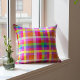 Een goed stevig kussen dat uitstekend past in ons Zen, maar toch kleurige interieur en een ander kussen van dezelfde ontwerper. Mooie kleuren, warmer dan op de afbeelding.