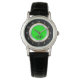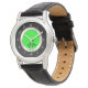 Dit leuke horloge heeft een felgroene achtergrond in een glanzend zilveren cirkelvormig lijst dat is gevoerd in dun goud. Het lijst speelt zich af tegen een zwarte achtergrond. De zilveren cijfers maken het horloge gemakkelijk leesbaar en uw eigen drieletterige monogram in zwart geeft een persoonlijk tintje. *Let op: het afbeelding is afgedrukt op het oppervlak en het afbeelding bevat geen zilver, goud of andere metaalachtige substanties.*