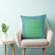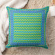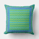 Een Sierkussen of een kussen met een 'Blue Moons'-mix 'n'-match-patroon van Chevrons en Polka Dots in Dazzling Blue, Neon Green, Turquoise en Emerald Green. Een deel van het collectie "Blauwe Moons" van Posh & Painterly; van een handbeschilderd papieren collage van Judy Adamson.