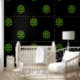 Gothic Fans zullen vooral dol zijn op dit coole schil- en plakvinylbehang met een herhalend patroon van felgroene neonachtige suikerschedellijntekeningen over een effen zwarte achtergrond.