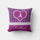 Een prachtig paars hartfiguur gooit kussens met een gestreept design (in purperen en aqua) en polka-stippen. Pas de tekst aan voordat u bestelt!
