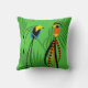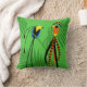 Kleurrijke vectorkunst van een paar fictieve exotische vogels van paradijs met lange staartwaren en heldere plumage op een groen oerwoud als achtergrond.