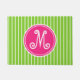 Helderroze en groene stripe monogram deurmat