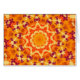 Deze heldere en vrolijke mandala kaleidoscoop heeft een patroon in de kleuren van gouden oranje en paarse bloempitten