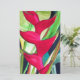 Uit originele waterverf-bloemschilderij van kunstenaar Sacha Grossel van een exotische tropische bloem Lobster Claw Heliconia, gevonden in Zuid-Amerika en de tropische eilanden in de Stille Oceaan. Dit heldere rode, misleidende botanische wonder is levendig in kleur, opvallend en uniek en ongebruikelijk bloemontwerp. De bladeren zijn koel tropisch groen met bladeren die lijken op bananenbladeren.