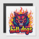 "Dit intense en edgy ontwerp is voorzien van een dreigend wolfachtig wezen met scherpe tanden en gloeiende gele ogen, verzwolgen door levendige vlammen. De tekst 'hellehonden' wordt prominent onder het wezen weergegeven in een vet, gestileerd lettertype. Dit ontwerp geeft een gevoel van agressie, kracht en een vurige geest. Het is veelzijdig voor een reeks producten die gericht zijn op een gedurfde, opstandige of energieke esthetiek. Stel je het voor op kleding, accessoires, posters of branding voor sportteams of edgy merchandise."