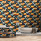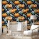 Herfst Bloemen Pompoen Patch op Donkerblauw Behang
