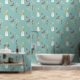 Eenvoudige minimale illustratie van herfstbloemen in een pot op een mintgroene achtergrond.