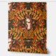 Handbeschilderde eekhoorn en herfstflora- bladeren; paddenstoelen; eikels en bessen