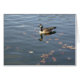 Eikenbladeren drijven op het water waar deze Canadese gans zwemt.