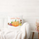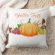 Deze gooiende kussen worden getoond in een herfst herfst pompoenprint met een witte achtergrondkleur. De Oranje accentkleuren passen deze kussen aan of kopen zoals is.