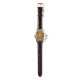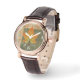 Vrouwen perfecte vierkante bruine lederen bandhorloge met een afbeelding van een groen, sinaasappel en geel esdoornblad op gewatteerde groen en bruin. Zie bijpassende vierkante bedel, grote vierkante premium metalen sleutelhanger en vierkante dubbelzijdige acryl sleutelhanger. Zie het gehele Thanksgiving Watch collectie onder de categorie ACCESSOIRES in de sectie FEESTDAGEN.
