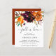 Een roerige budgetbrudale doucheuitnodiging met de kop "Herfst in Love" samen met een waterverf boho floral bouquet met warme en aardeachtige tinten van verbrand sinaasappel, terracotta en diepe woesteling, samen met wat groen. Een elegant ontwerp met de rijke tinten van de herfst perfect voor een herfst vrijgezellenfeest. Deze goedkope bruiddoucheuitnodigingen worden op papier gedrukt voor een budgetvriendelijke optie.