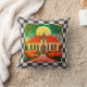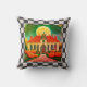 Herfst Moon Sierkussen - warme maangloed schijnt op een chateau pompoentuin. De kleuren zijn groen, sinaasappel, crème, zwart en wit geruit patroon.