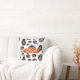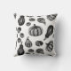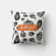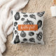 Hallo Kussen met zwart-witte pompoenen, met illustratie en tekst "herfst" op het label van fel sinaasappel.