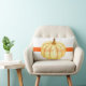 Deze gooiende kussen worden getoond in een herfst herfst pompoenprint met een witte achtergrondkleur. De Oranje accentkleuren passen deze kussen aan of kopen zoals is.