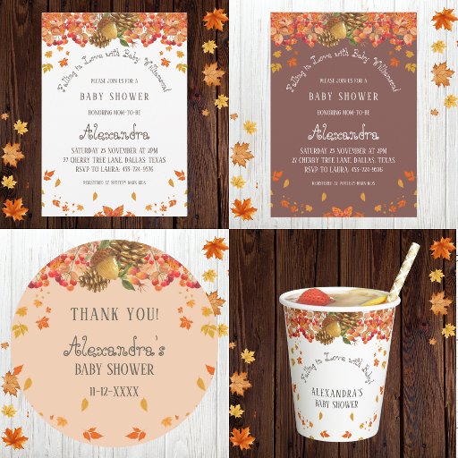 Deze gepersonaliseerde, Herfst in Love Autumn Baby shower Thank You Stickers zijn de perfecte manier om dankbaarheid te uiten aan uw gasten. Met een prachtig boho chic ontwerp, deze stickers presenteren herfstachtige eikels en vallende bladeren in zacht rustieke tinten van mocha bruin en sinaasappel, aangevuld met rode bessen verweven tegen een donkere mocha achtergrond. De combinatie van moderne en vreugdevolle kalligrafie lettertypen voegt een vleugje sophisticatie toe aan het ontwerp. Perfect voor uw Herfst Baby shower gunsten, deze dank u stickers zal een blijvende indruk op uw gasten, waardoor ze zich gewaardeerd en geliefd. Ideaal voor het toevoegen van een persoonlijk tintje aan uw baby shower geschenken en gunsten.