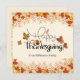 Vier het seizoen van dankbaarheid met deze prachtig ontworpen Thanksgiving kaart. De rand is voorzien van levendige herfstbladeren in warme tinten van sinaasappel, rood en goud, die perfect de "Happy Thanksgiving"-boodschap in een speels lettertype omlijsten. Personaliseer de kaart met de naam van uw familie of een speciale groet om het extra betekenisvol te maken. Deze kaart legt de gezellige en feestelijke sfeer van de herfst vast, waardoor het een geweldige manier is om uw oprechte bedankt en goede wensen naar geliefden te sturen tijdens de feestdagen.