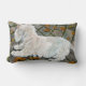 Seizoensgebonden Herfst Autumn West Highland White Terrier liggend op een stenen patio met gevallen bladeren. Westie hond gluren over een bloeiende struik. Isobel. Copyright © 2025 Angi Laframboise. Alle rechten voorbehouden. Fine art hondenras geschenken voor hondenliefhebbers.